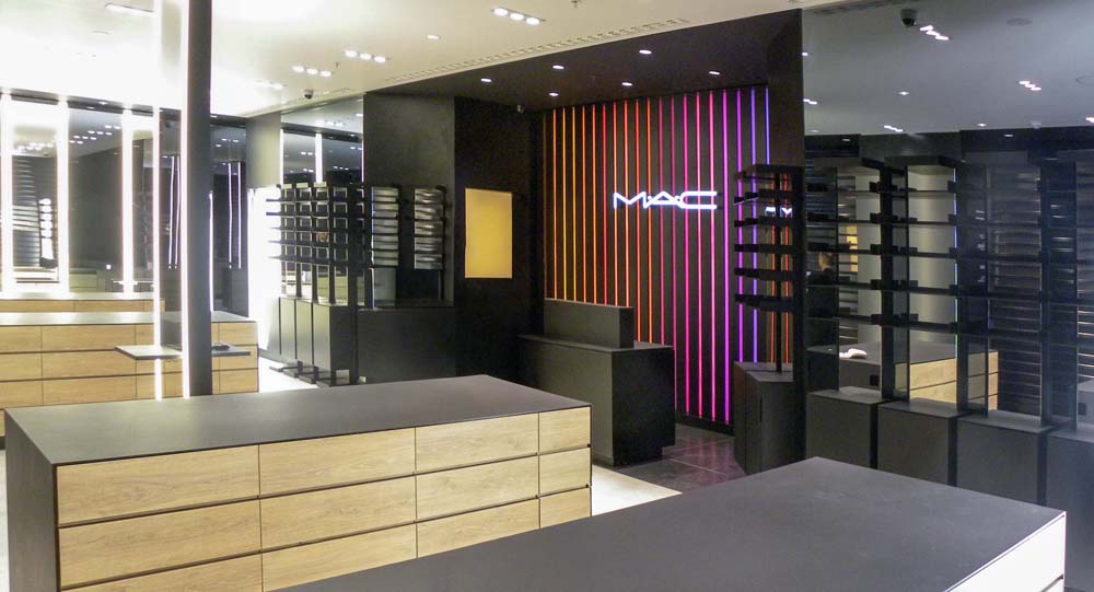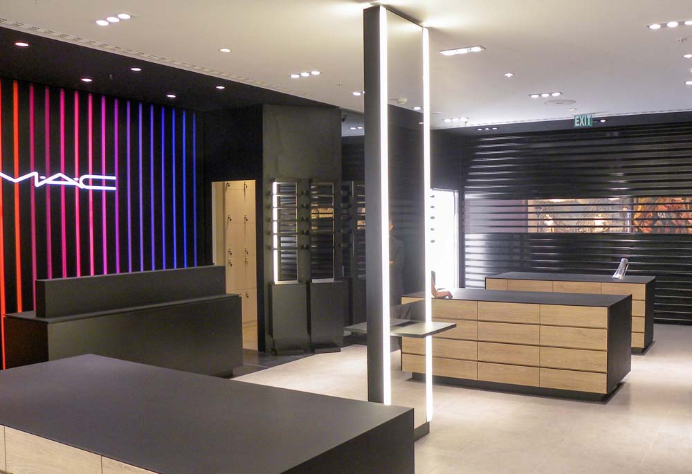 MAC’in bu tasarım yaklaşımı, ziyaretçilerin sadece alışveriş yaptığı değil; markayla etkileşime geçtiği, ürünleri deneyimlediği ve estetik algısını pekiştirdiği bir alan yaratır. Mağaza içi uygulamalar, global marka kimliğiyle birebir uyum içinde geliştirilmektedir.